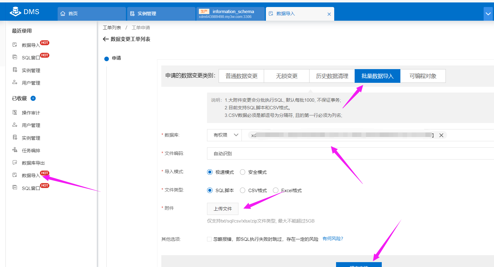 然后在上传数据信息了,那边会进行审核,基本秒过。最后我们点击执行,数据信息就成功导入数据库了。